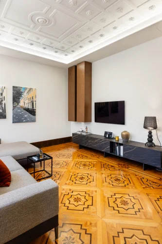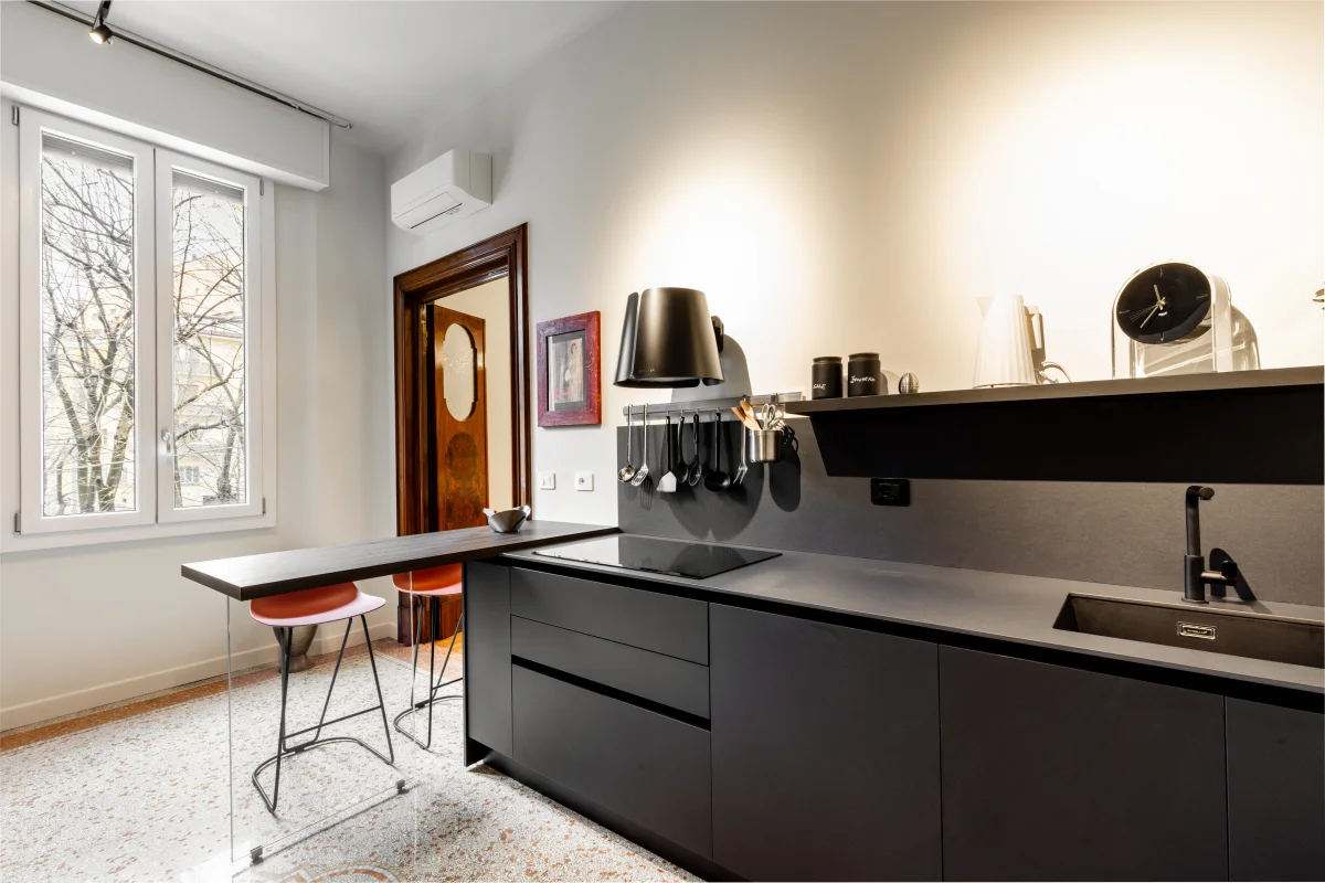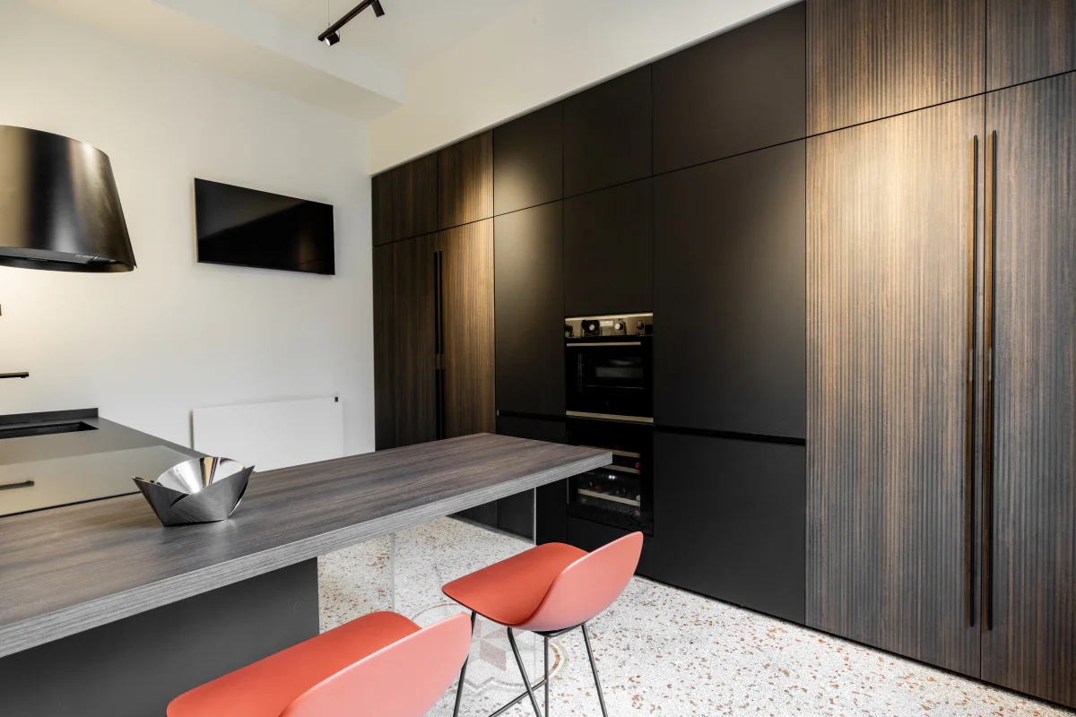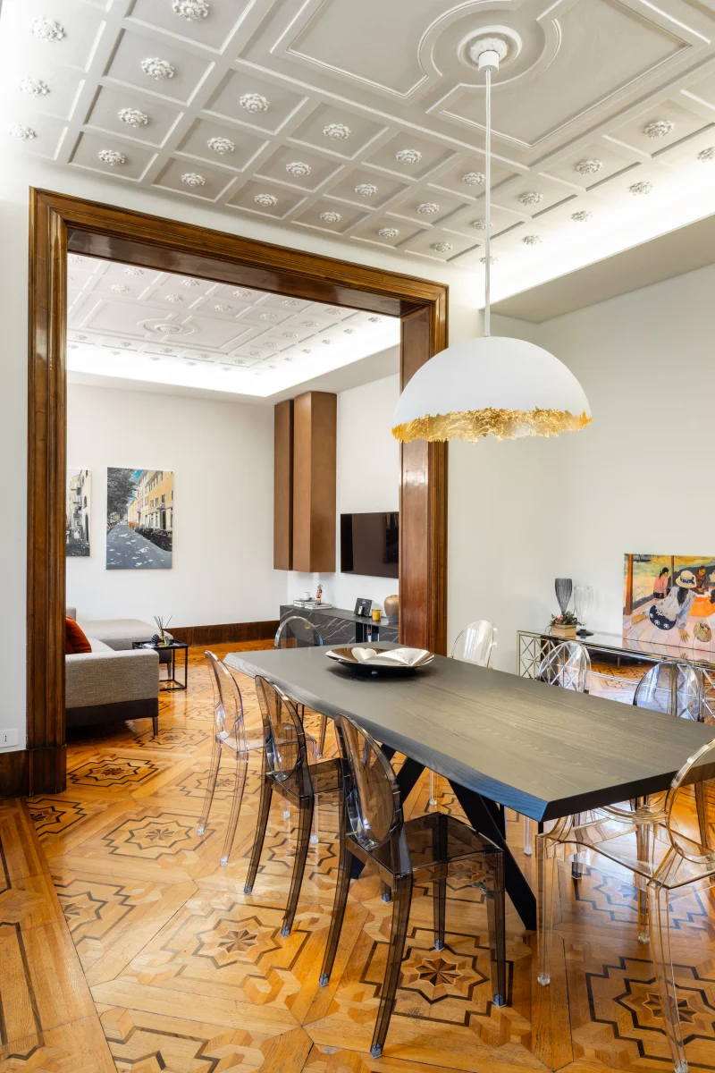 Appartamento a Bologna, dove il recupero di elementi in legno con una lunga storia si miscelano ad elementi moderni.